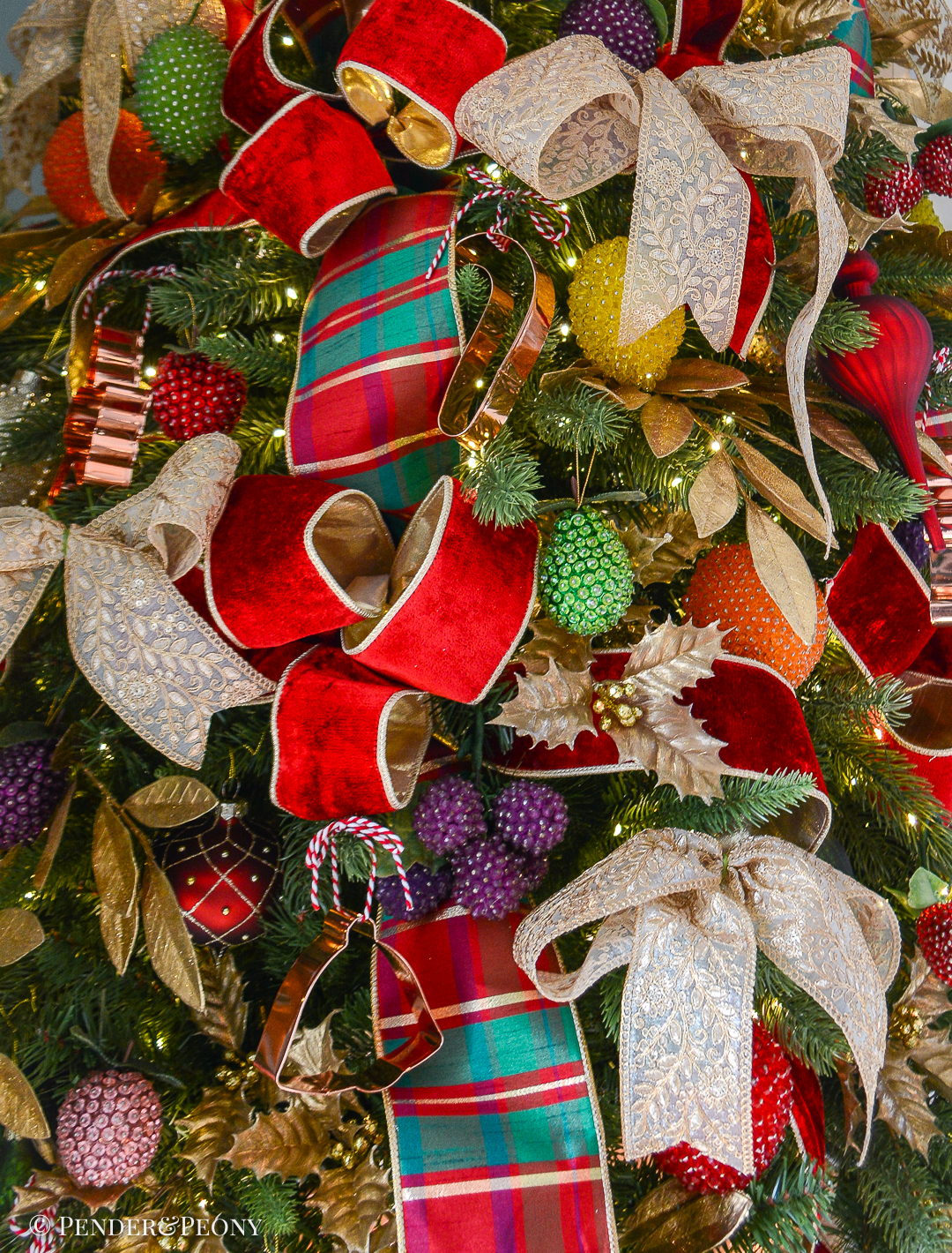A gorgeous vibrant red velvet ribbon with gold backing. Wired. 2.5″W
